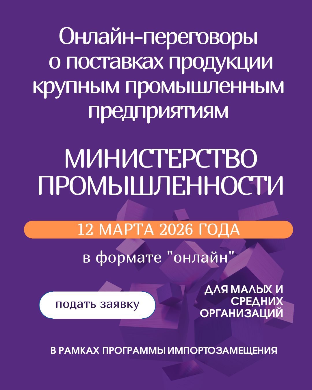 12 марта 2026 года с 11:00 до 13:00 часов в рамках контактно – кооперационной биржи планируется проведение онлайн-переговоров с организациями Министерства промышленности