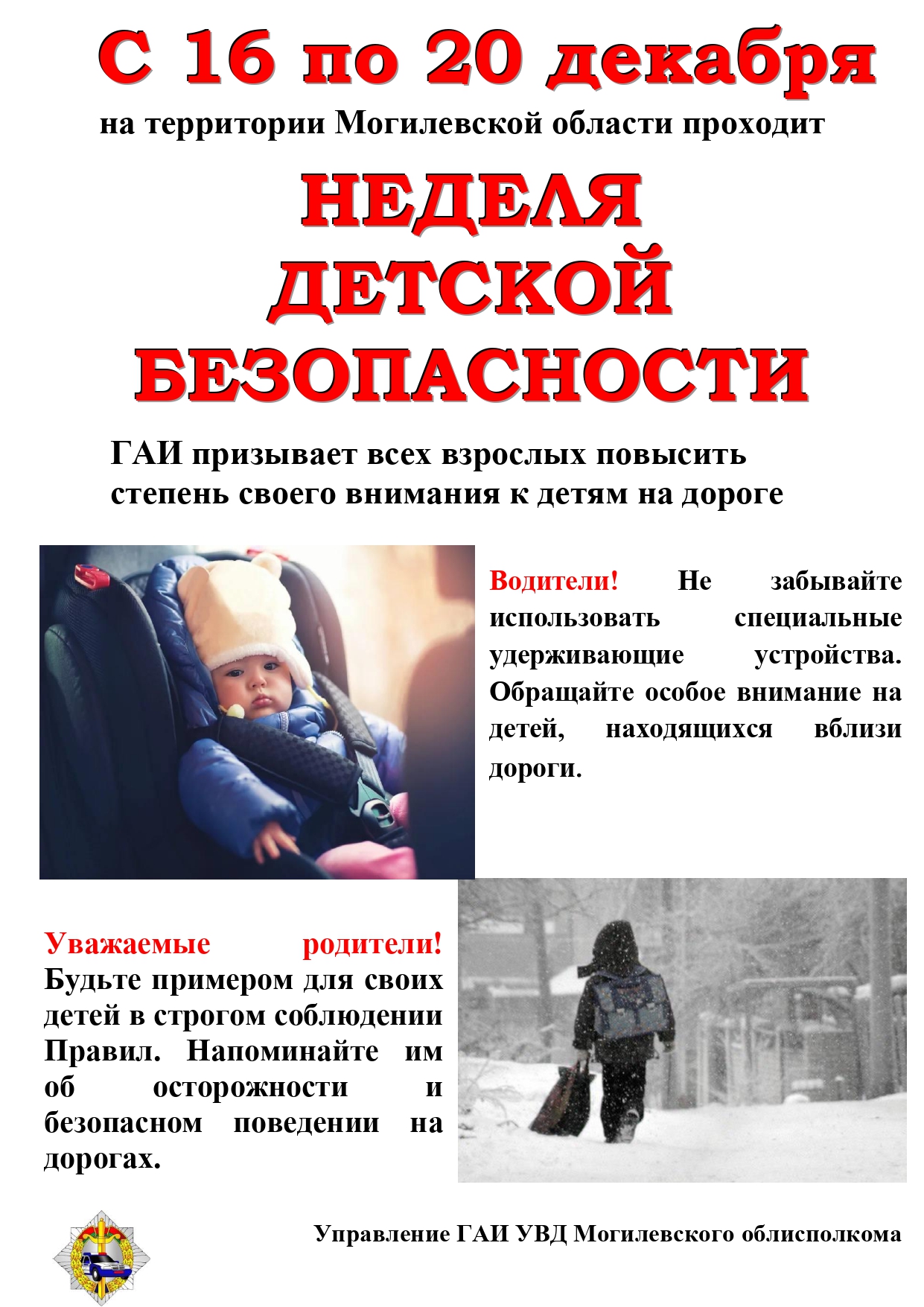 С 16 по 20 декабря на территории Могилевской области проходит НЕДЕЛЯ ДЕТСКОЙ БЕЗОПАСНОСТИ