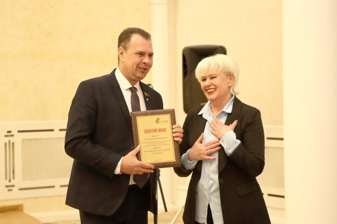 Также Юрий Мишин вручил начальнику отдела культуры райисполкома Наталье Бискуп памятный знак партии «Золотой фонд». Он выдаётся тем членам партии, которые награждены за свою деятельность государственными наградами.