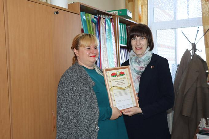 Также вручены благодарности заместителя председателя райисполкома Ольги Судиловской экономисту акционерного общества Марии Семенович и бухгалтеру Алесе Борисенко.