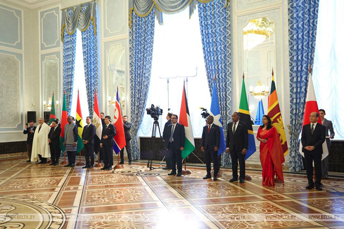 Обращаясь к послам, глава государства сказал: «Мы открыты для ваших инициатив по развитию двусторонних отношений. Будь то торговля, инвестиции, наука, культура, образование, спорт или народная дипломатия. Можете рассчитывать на поддержку на всех уровнях. Я приглашаю вас более плотно познакомиться не только с нашей культурой, но и с нашими возможностями. Каждой из ваших стран у нас есть что предложить. Двери для вас в Беларуси открыты. Желаю вам успешной и плодотворной работы на вашем ответственном посту в Беларуси«.