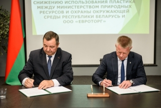 Министерство природных ресурсов и охраны окружающей среды и торговая сеть «Евроопт» заключили соглашение о сотрудничестве по снижению использования пластика. Документ в головном офисе компании подписали Министр Андрей Худык и председатель Совета директоров ООО «Евроторг» Александр Литвин. На церемонии подписания соглашения присутствовал также Министр антимонопольного регулирования и торговли Алексей Богданов.