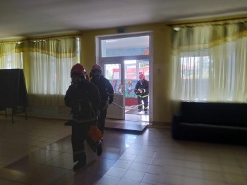 В рамках Единого дня безопасности и акции «В центре внимания — дети!» работники Мстиславского районного отдела по чрезвычайным ситуациям провели тренировку по отработке действий в случае возникновения пожара с учащимися и работниками школы-интерната г. Мстиславля.